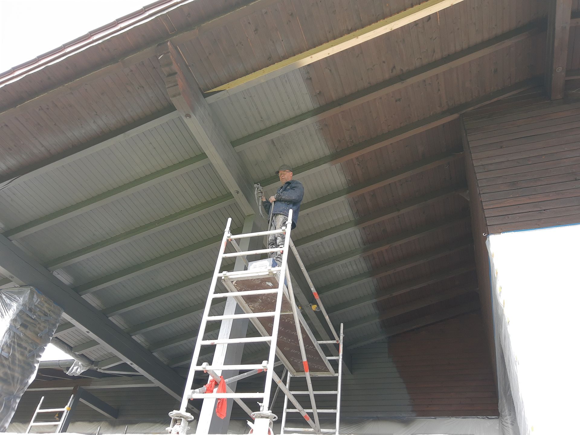 Ende ´21 haben wir dann angefangen den Saunabereich "aufzuhübschen" - na ja, es war dann doch etwas aufwändiger. Für gute Luft sorgt in dem Bereich seitdem eine Zu- und Abluftanlage. Dazu mussten die Decken abgehängt und viele Schläuche verlegt und angeschlossen werden. Das bewährte Kaml-Team hat wieder tolle Arbeit geleistet: trocken gebaut, Böden geschliffen und verlegt, Decken gestrichen ... und eine sensationell schöne und wohnliche Wandbeschichtung realisiert.