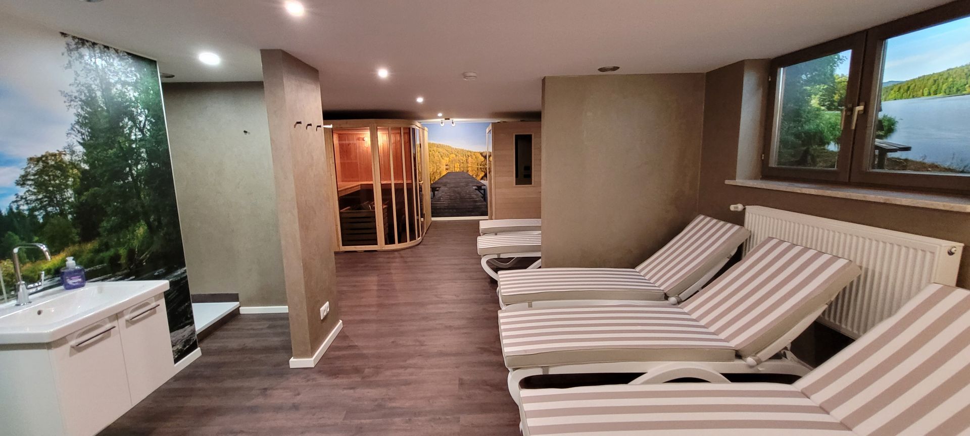 Ende 2021 wurde unser Saunabereich endgültig fertig gestellt. Der ca. 90 Quadratmeter große Bereich lädt mit zwei großzügigen Duschen, einem Aufenthaltsbereich mit Teemaschine und sechs bequeme Ruheliegen zum Aufwärmen und Entspannen ein. Neben der klassischen finnischen Sauna gibt es eine tolle Infrarot-Kabine für zwei Personen. Der Bereich kann 24/7 genutzt werden und Saunatücher gibt´s immer reichlich.