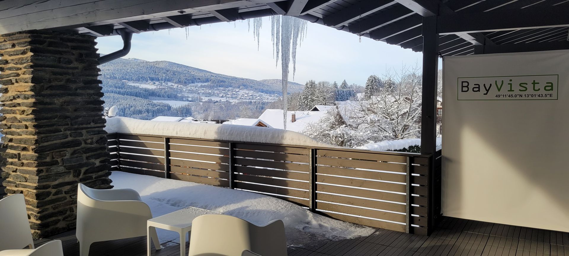 BayVista, die Bayerwald Lodge, liegt in Frahels am Südhang mit tollem Blick in die Berge. Das großzügige Hanggrundstück bietet viel Platz zum Chillen, Spielen, Grillen… Im Jahr 2020 haben wir das ehemalige Garni „Haus am Berg“ übernommen, von Grund auf saniert und komplett umgebaut. Es sind zehn modern eingerichtete Ferienwohnungen, schöne Terrassen, ein Aufenthalts- und Spieleraum, ein Fitness- sowie ein Saunabereich entstanden. Die Wohnungen mit Südblick haben großzügige Terrassen mit Blick auf die Berge. Die Küchen sind mit allem, was man braucht ausgestattet, inklusive Kühl-/Gefrierschrank und Microwelle mit Grill, in allen Zweizimmerwohnungen zusätzlich mit Spülmaschine. Die Familienwohnung mit großem Schlafzimmer bietet Platz für vier und hat einen eigenen kleinen Garten. In allen Wohnräumen sind Smart TVs installiert, in Schlafräumen Flatscreens und WLAN gibt´s im ganzen Haus for free. Nach Wander-, Rad-, Ski- oder Motorradtouren können Schuhe und Klamotten in unserem Trockenraum gereinigt und aufgehängt werden. Dort steht unseren Gästen auch ein Wasch-/Trockner zur freien Verfügung.